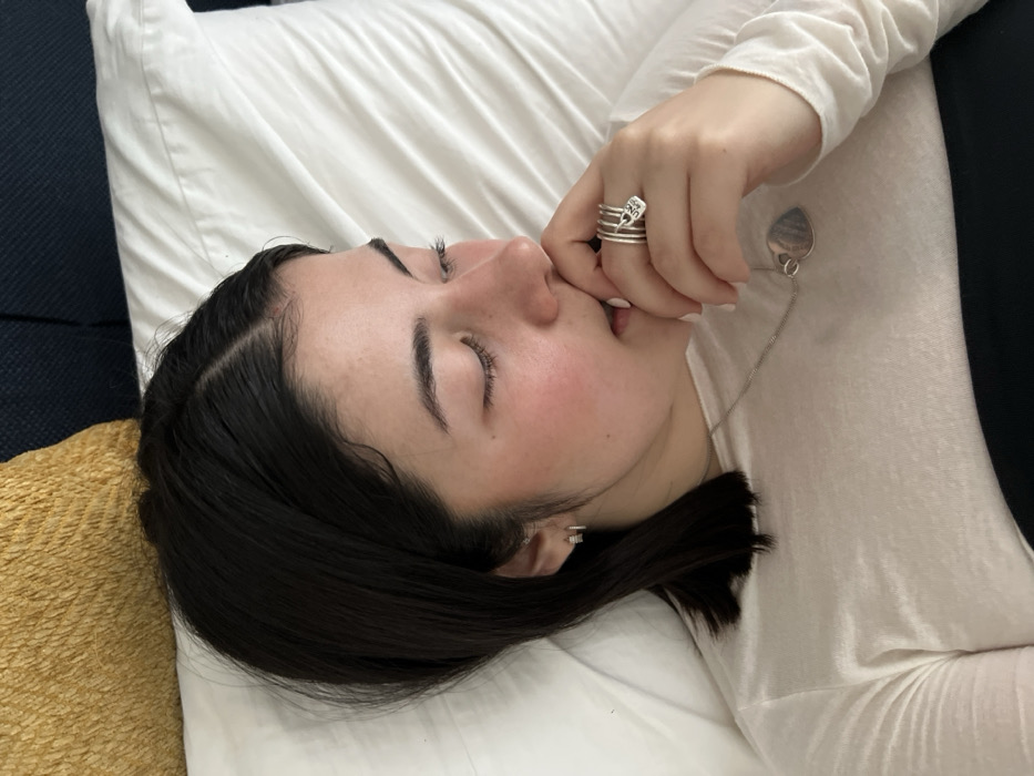 - "A woman lies on her side, head resting on a white pillow" by FM-sBHb22, licensed under CC BY 4.0