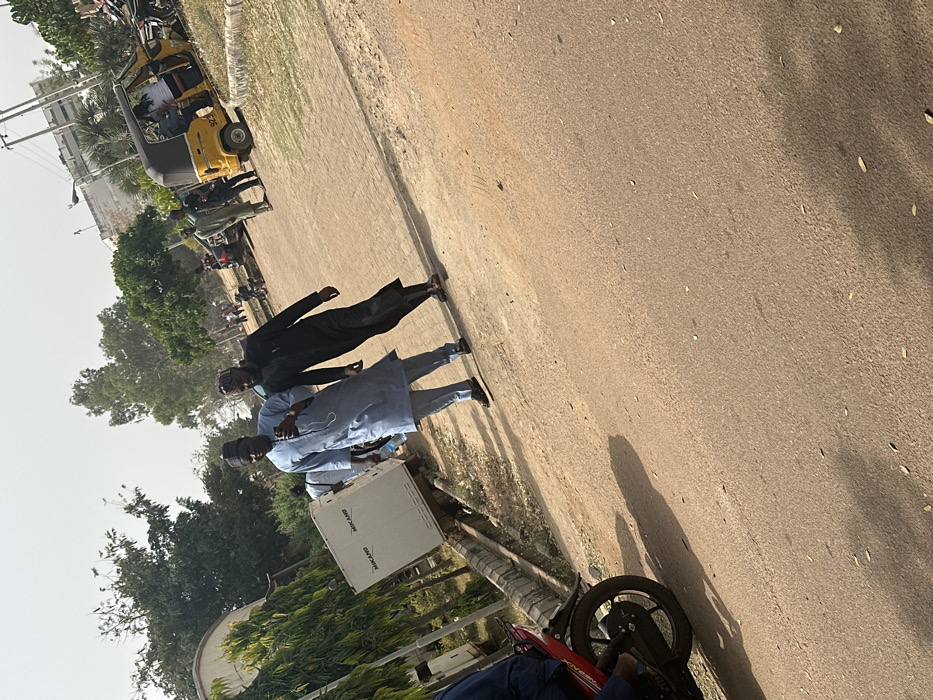 The image depicts an outdoor daytime street scene in Tudun Nupawa, Nigeria, under bright sunlight, indicated by distinct shadows
