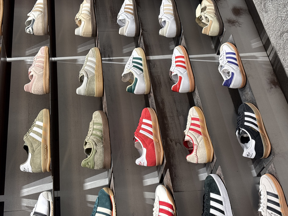 - "This image depicts a multi-tiered retail display showcasing approximately 20 pairs of Adidas sneakers, predominantly Gazelle, Campus, and Samba models, within a store located in Vila Nova de Gaia, Portugal" by FM-2hLIh1, licensed under CC BY 4.0