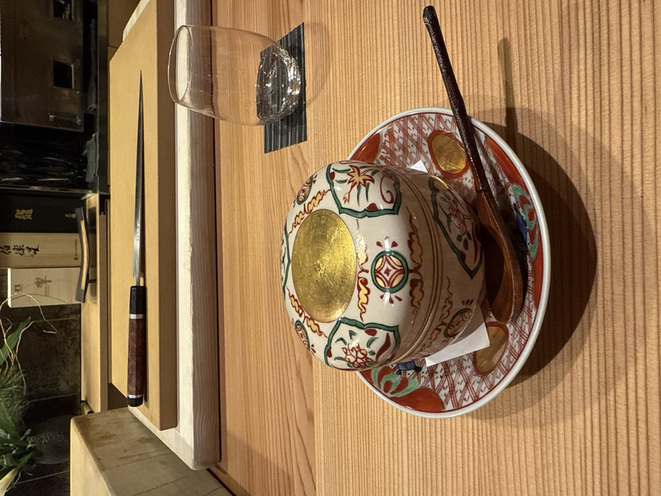 - "A still life presents a wooden table with a covered bowl set on a patterned plate, accompanied by a wooden spoon" by FM-RAq1Q2, licensed under CC BY 4.0