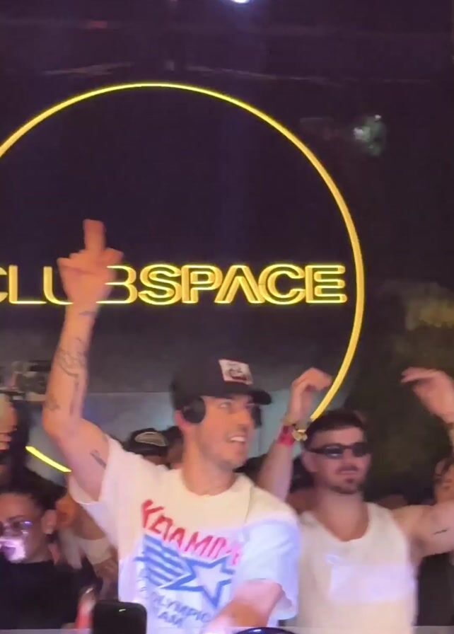 DJ in a white t-shirt with "KETAMINE" printed on it and a black cap at Club Space with a crowd behind him