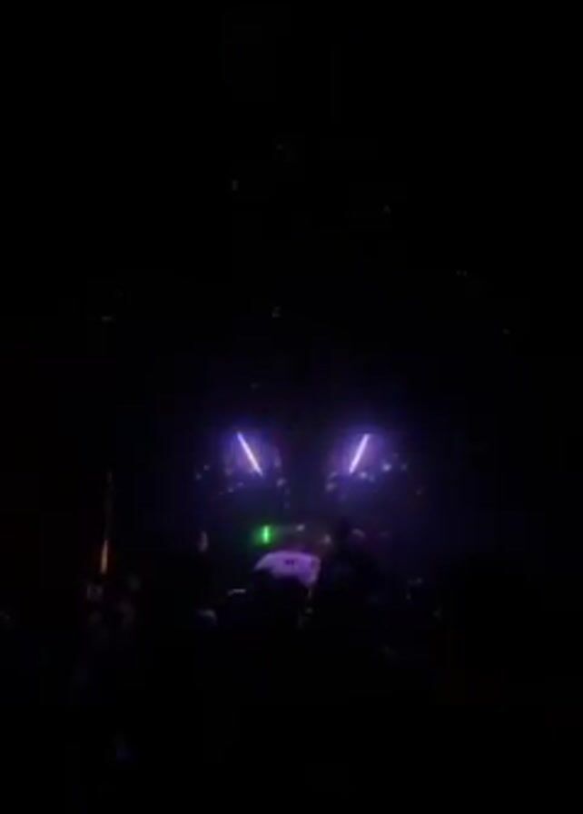 dark indoor space, seemingly a nightclub or concert venue, filled with people