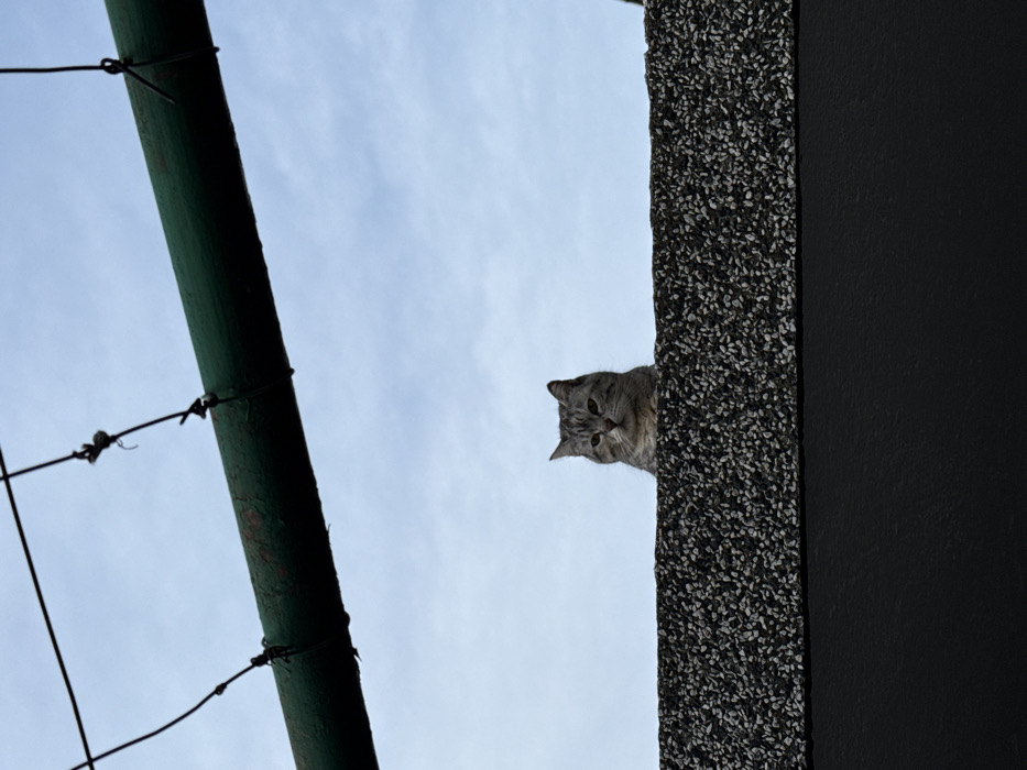 - "In Trud, Bulgaria, an outdoor scene depicts a grey tabby cat positioned behind and above a wall" by FM-eueBM2, licensed under CC BY 4.0