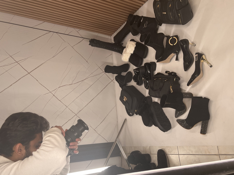 - "A photographer is capturing an image of a collection of black shoes and bags" by FM-NiDCC3, licensed under CC BY 4.0