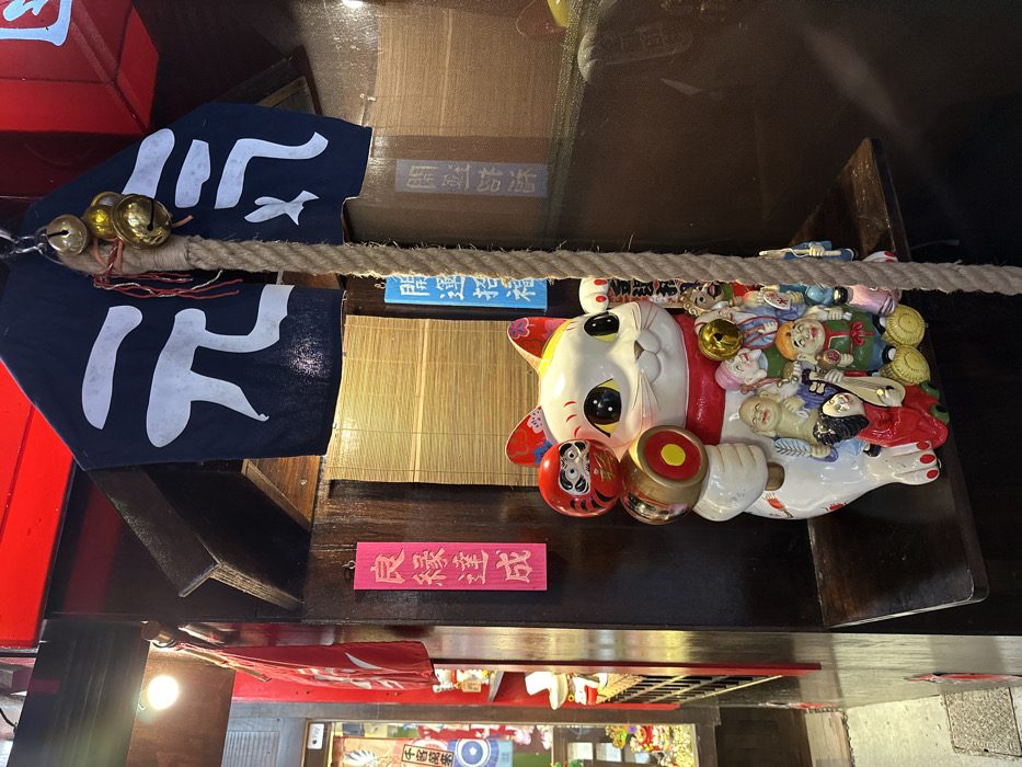 The image displays an interior or sheltered exterior detail of a Japanese-themed establishment located in New Taipei, Taiwan
