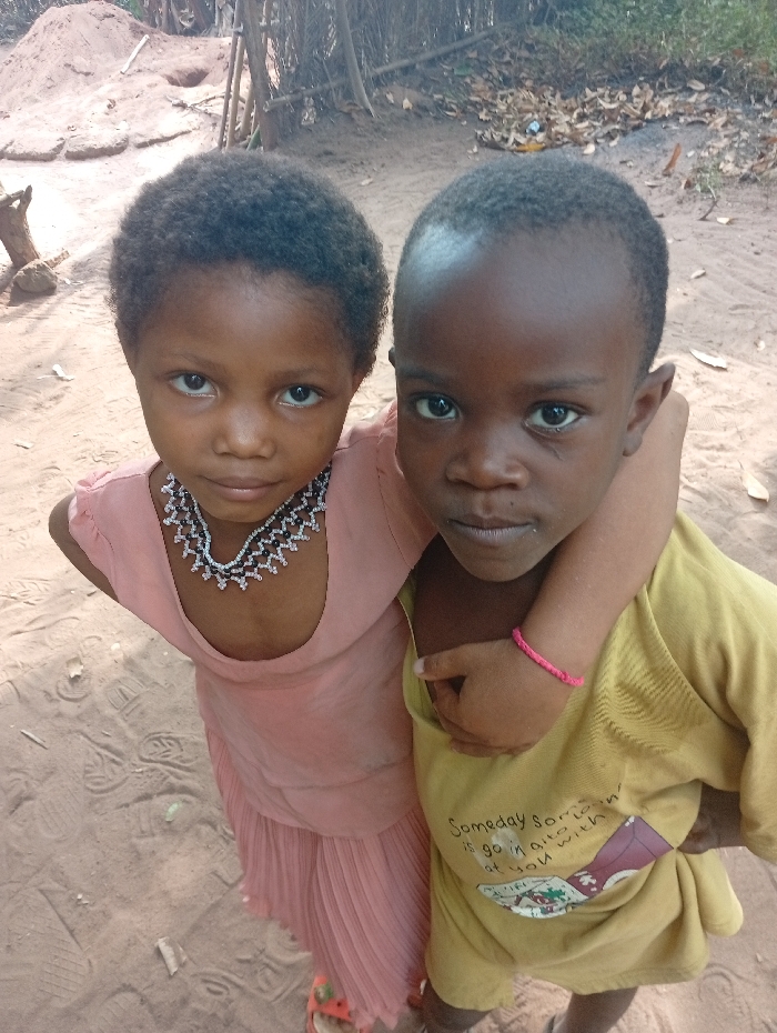 An outdoor, high-angle image captures two young, dark-skinned children in Eziudo, Nigeria