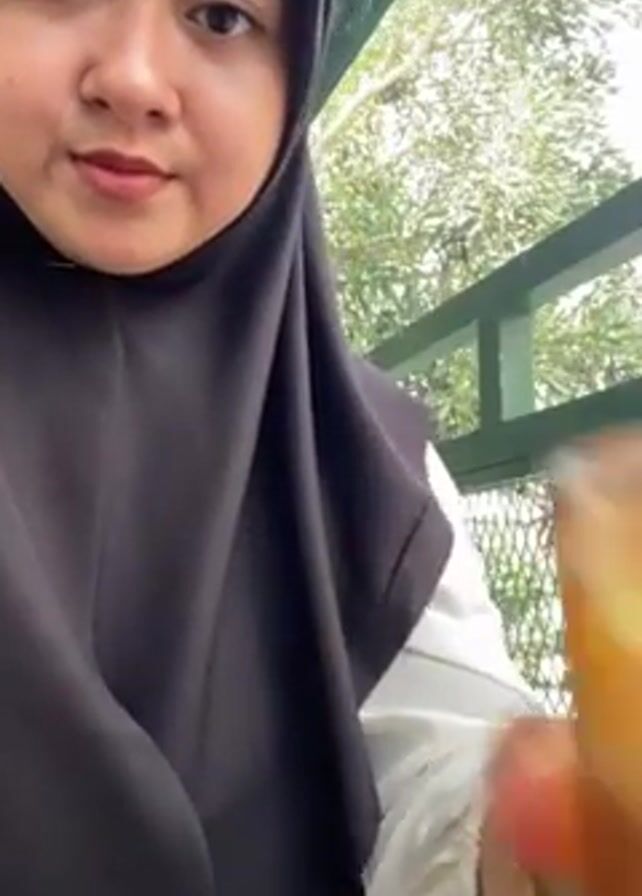 - "A person wearing a black hijab and white shirt is holding up a tall glass of iced coffee" by FM-htxI33, licensed under CC BY 4.0