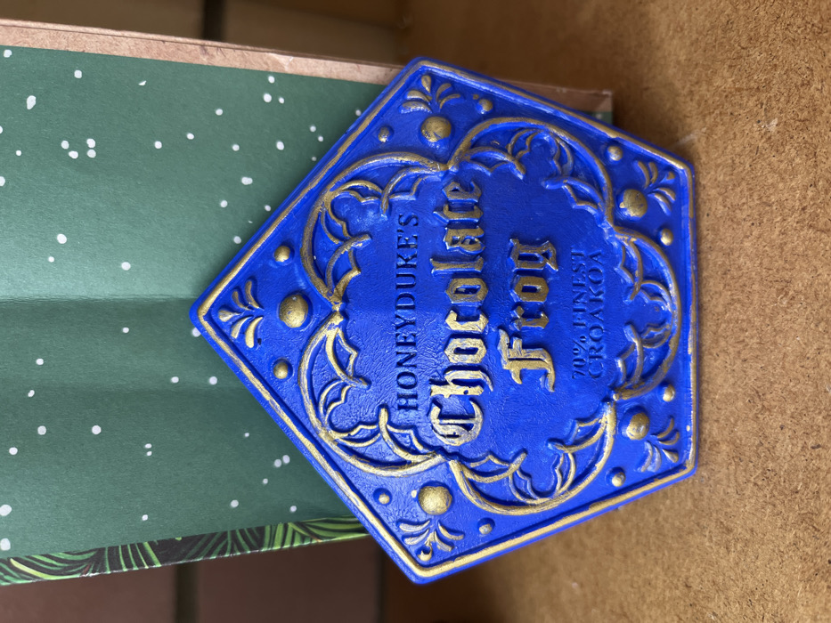 - "A static, close-up image depicts a blue, pentagonal-shaped replica item, identified as a "Honeydyke's Chocolate Frog," situated in Krasnodar, Russia" by FM-XlCcP2, licensed under CC BY 4.0