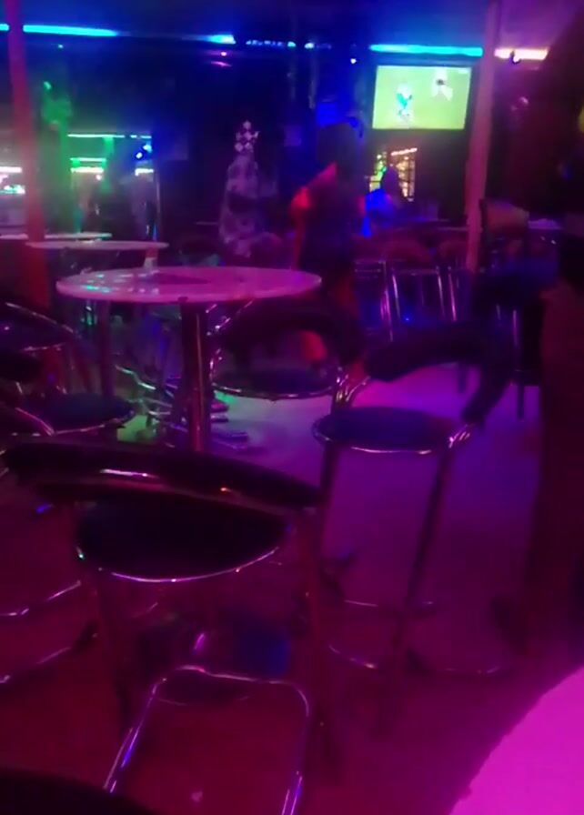 The video depicts the interior of a bar or club with a vibrant atmosphere