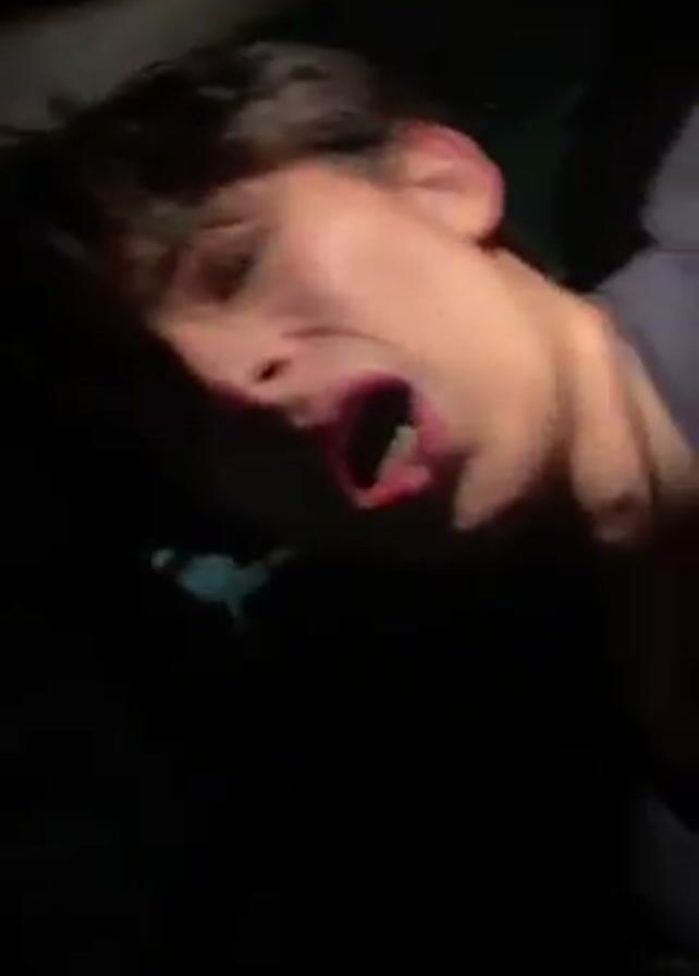 person with short, dark hair and fair skin, partially illuminated, in a dark environment, possibly a car interior. The person's face is partially visible, and they appear to be moving slightly. In the latter part of the video, the camera angle shifts, showing a pair of hands moving around in the darkness. The video is dimly lit, making it difficult to discern further details about the environment and the individuals involved. Background music is playing.