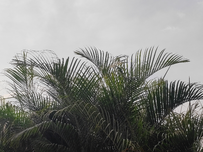- "Lush, vibrant green palm fronds dominate the frame, reaching towards a muted, overcast sky" by FM-HInS92, licensed under CC BY 4.0