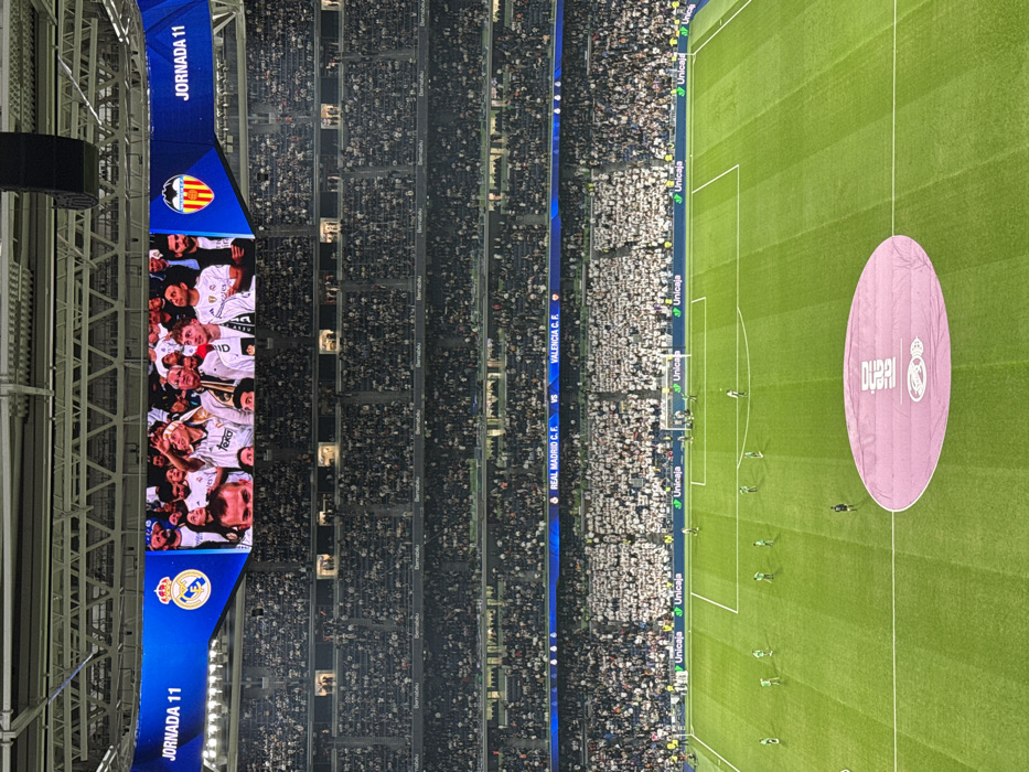 - "This image depicts the interior of the Santiago Bernabéu Stadium in Madrid, Spain, during what appears to be a football match or pre-match event between Real Madrid C" by FM-XMIO12, licensed under CC BY 4.0
