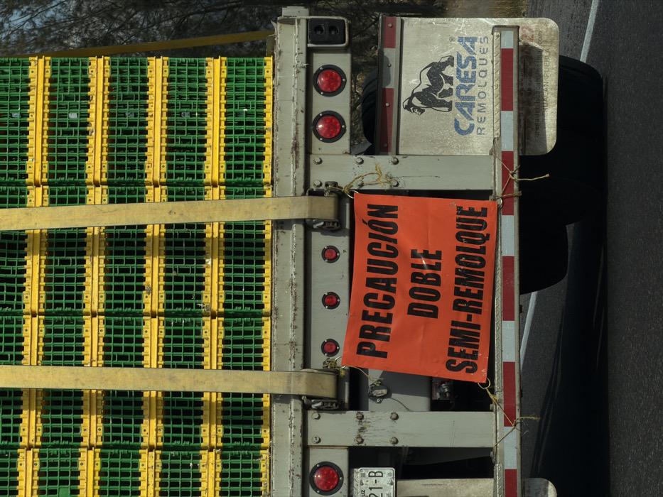 - "A truck bed viewed from above, stacked high with green and yellow crates secured by tan straps" by FM-tkmaw2, licensed under CC BY 4.0
