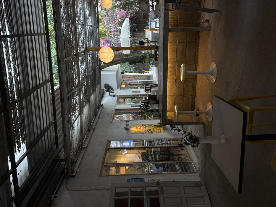 The image depicts a semi-outdoor cafe or bar area within Chiang Mai City Municipality, Thailand