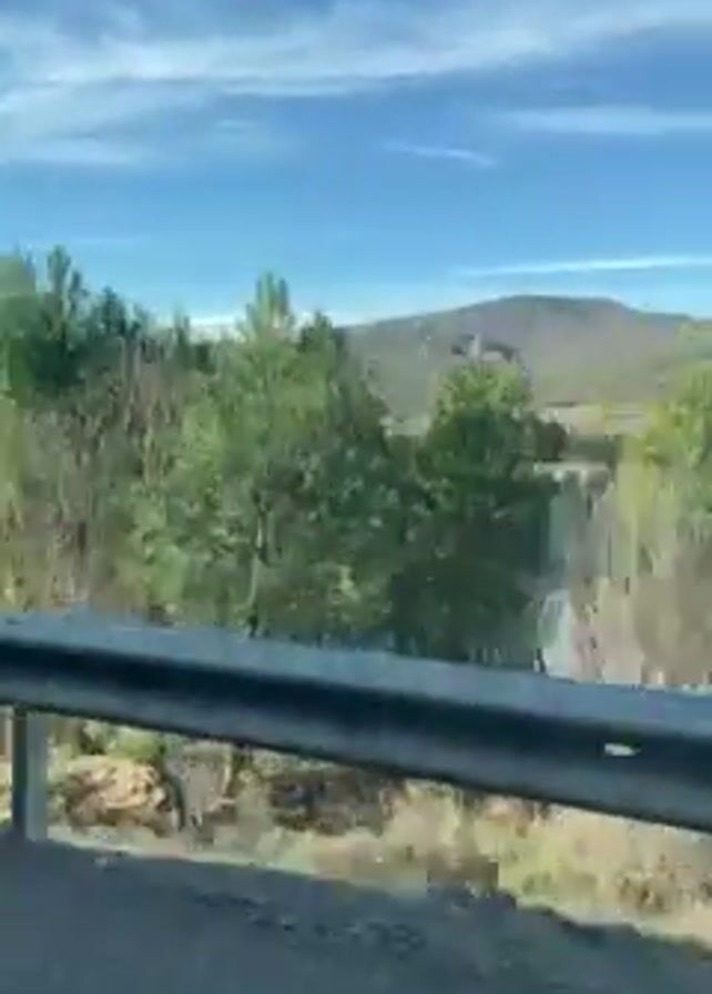 The video appears to be taken from inside a moving vehicle, showing the roadside scenery