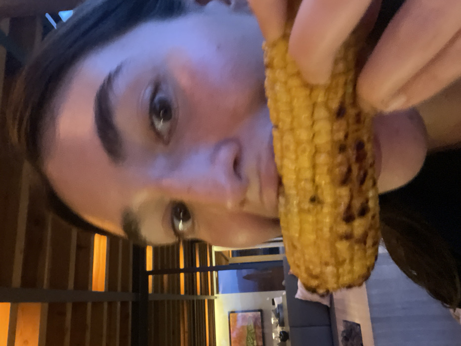 - "A close-up image depicts an individual, identified as an adult female, consuming a grilled ear of corn" by FM-G7z632, licensed under CC BY 4.0