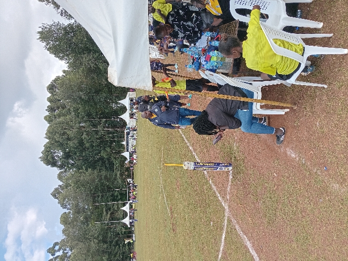 This image depicts an outdoor sporting event held on a grassy field in Meru, Kenya