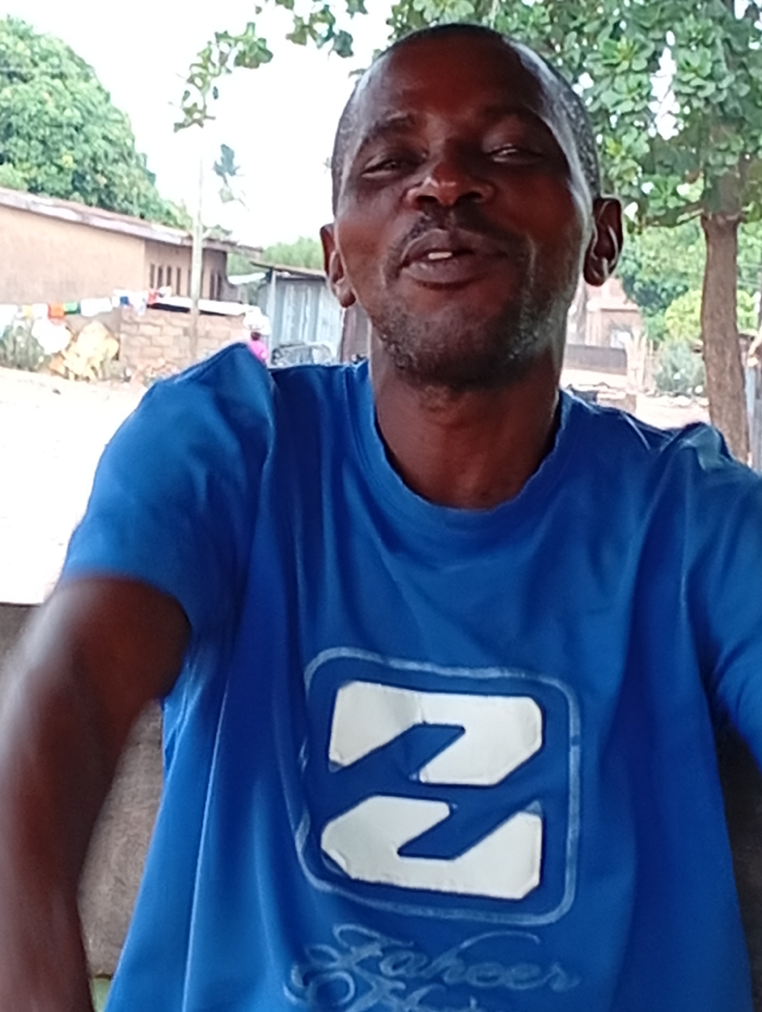 A medium shot shows a Black male wearing a blue t-shirt with a white logo, positioned outdoors in Gboko, Nigeria