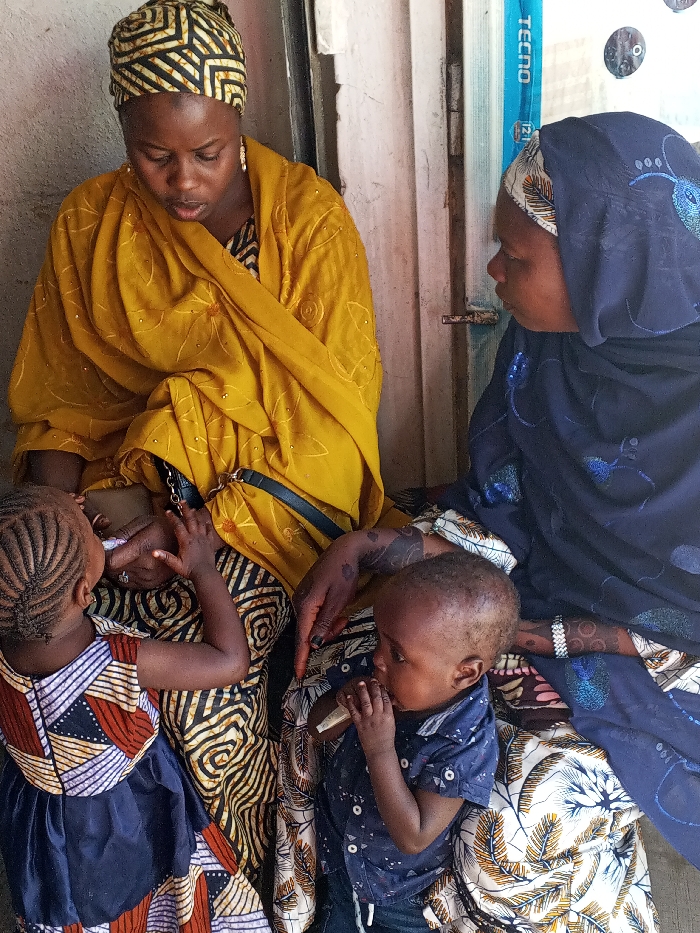 In Fagge C, Nigeria, four individuals are seated in an interior or sheltered exterior space