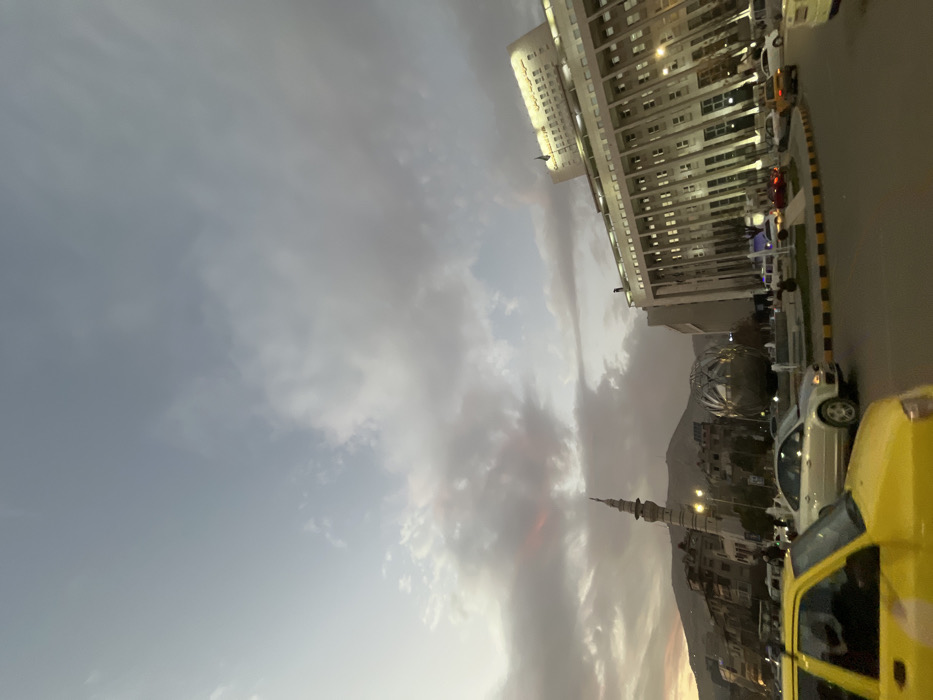 - "A long shot depicts a tall minaret rising amongst other buildings and cars" by FM-QTxZm1, licensed under CC BY 4.0