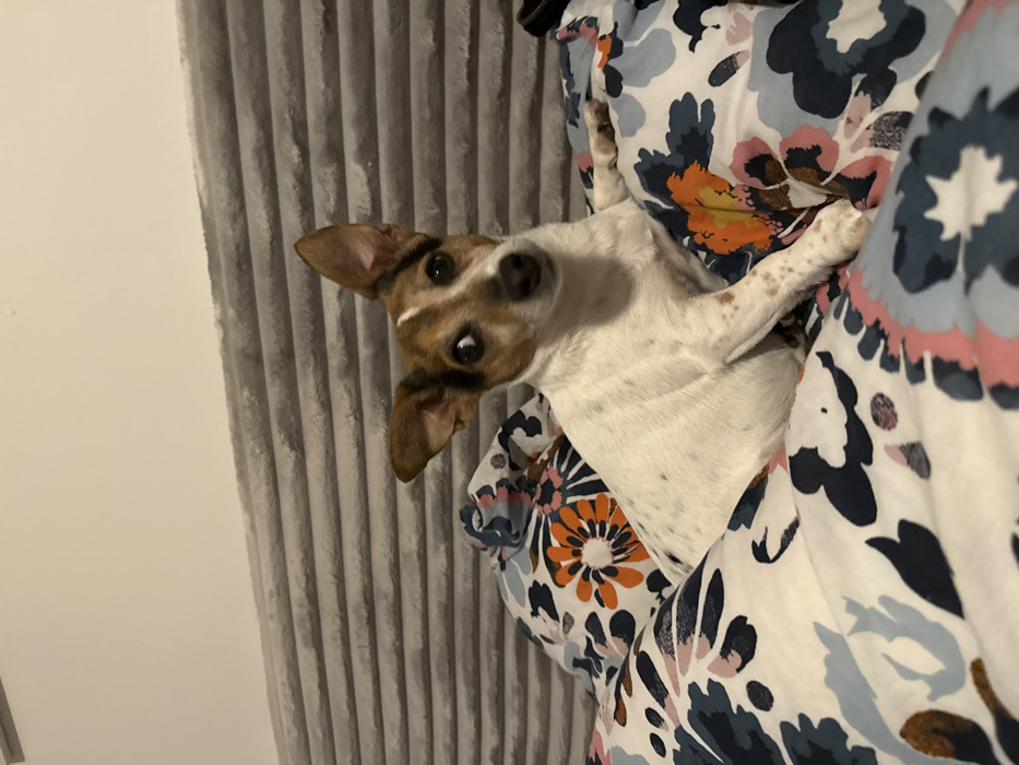 - "A small brown and white dog is angled to the left, looking into the camera" by FM-POwo32, licensed under CC BY 4.0