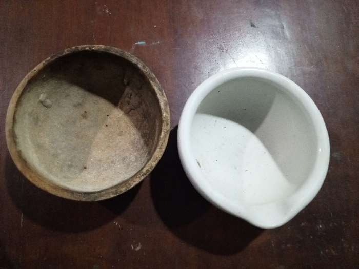 - "The scene, located in Longmiang, Laos, displays two distinct vessels positioned on a dark brown wooden surface" by FM-1nsvl1, licensed under CC BY 4.0