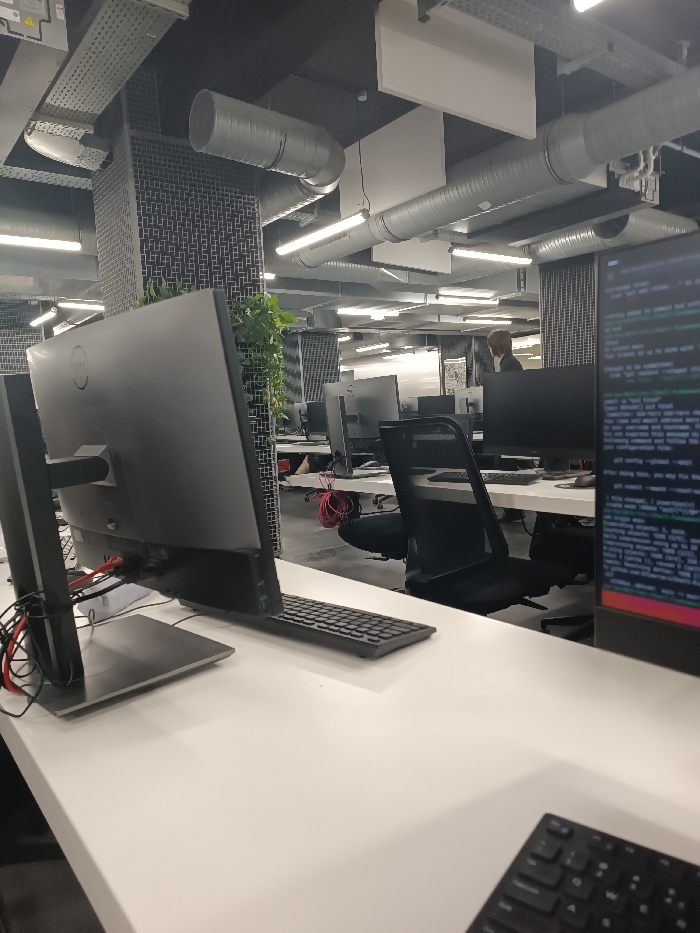 - "An office space features white desks, black chairs, and computer monitors displaying code" by FM-IaMde2, licensed under CC BY 4.0