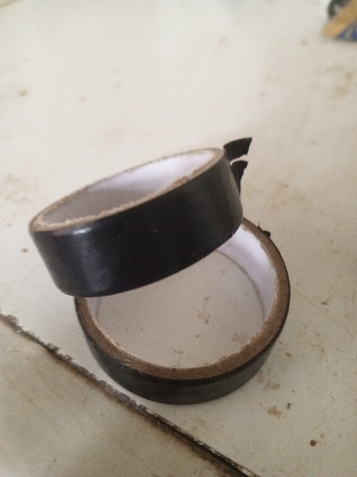 - "Two partially used rolls of black electrical tape are positioned on a light beige, possibly off-white, surface" by FM-mdwos1, licensed under CC BY 4.0