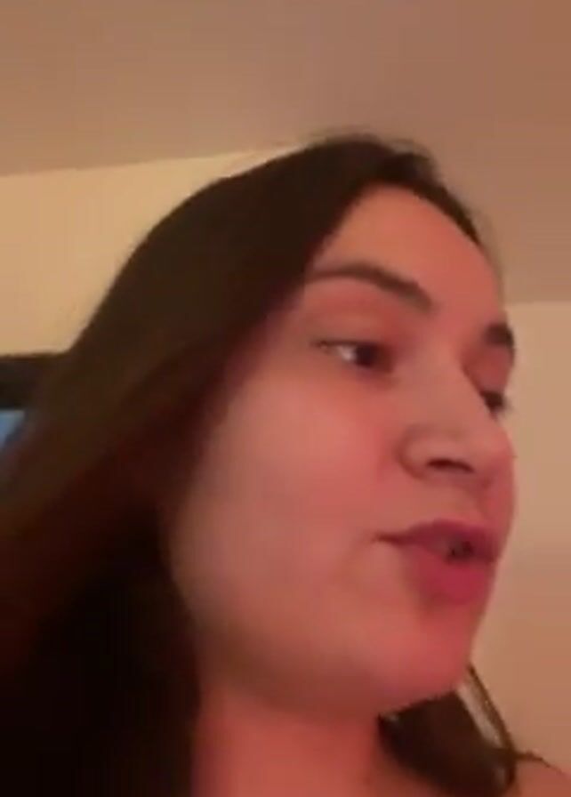 A woman is recording a video blog