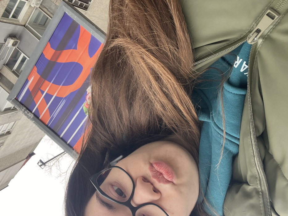 A selfie-style image depicts a female individual in an urban outdoor environment within Varna, Bulgaria