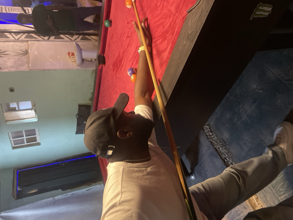 - "A man wearing a black baseball cap and a white t-shirt is playing pool on a red pool table" by FM-Snisy1, licensed under CC BY 4.0