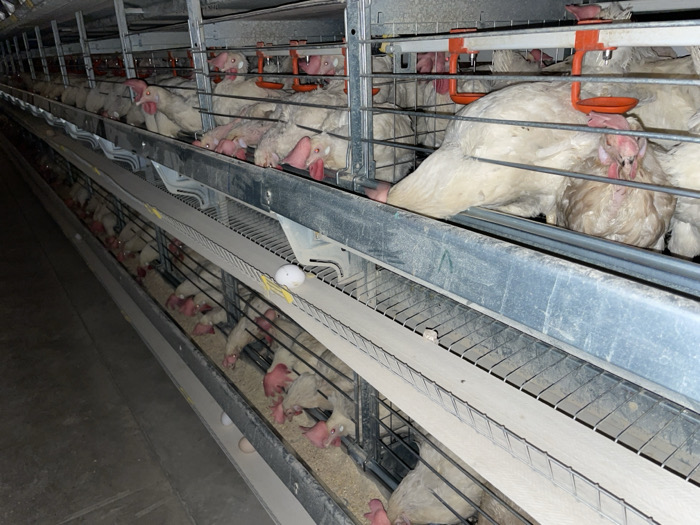This image depicts an interior view of an industrial poultry farm located in Shuyene Vosta, Afghanistan