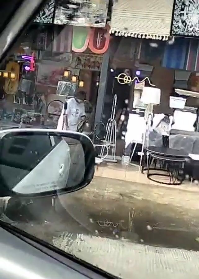 The video, taken from the interior of a vehicle, shows a commercial street with a store specializing in furniture and decorative items