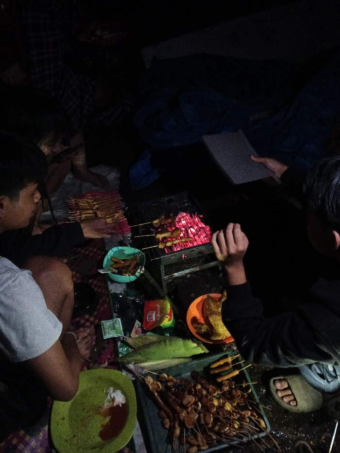 - "The image depicts a nighttime outdoor gathering in Ciherang, Indonesia, illuminated primarily by a charcoal grill" by FM-avQGt2, licensed under CC BY 4.0