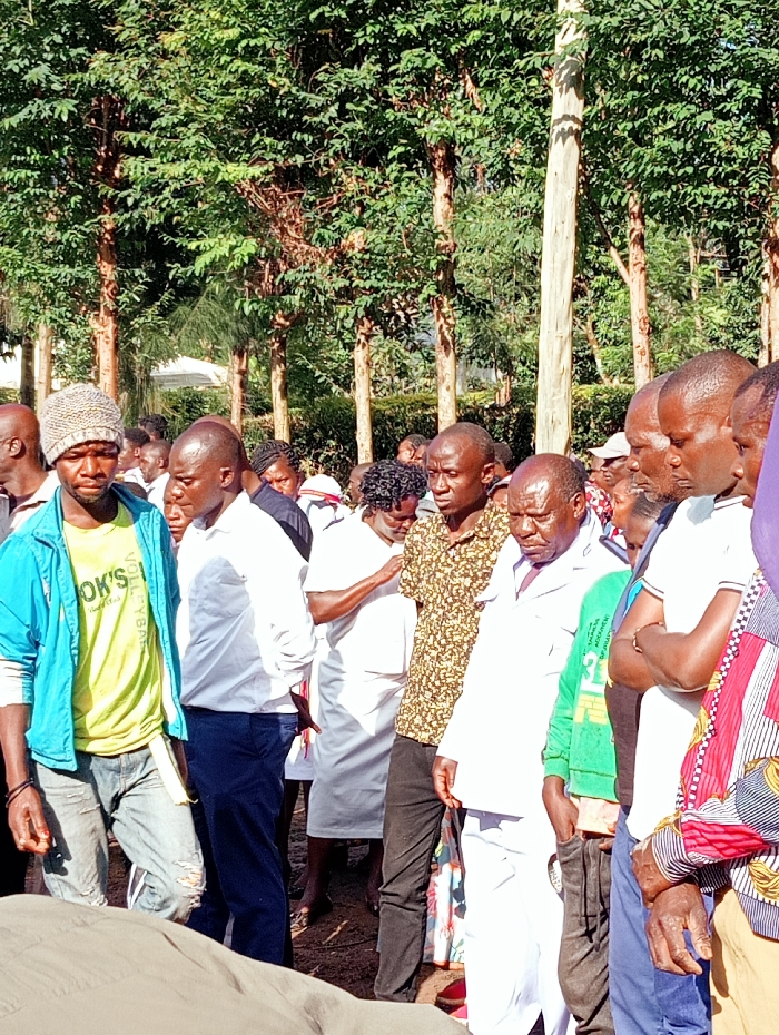 This image depicts an outdoor gathering of approximately 20 individuals, primarily adults of African descent, located in Lumakanda ward, Kenya