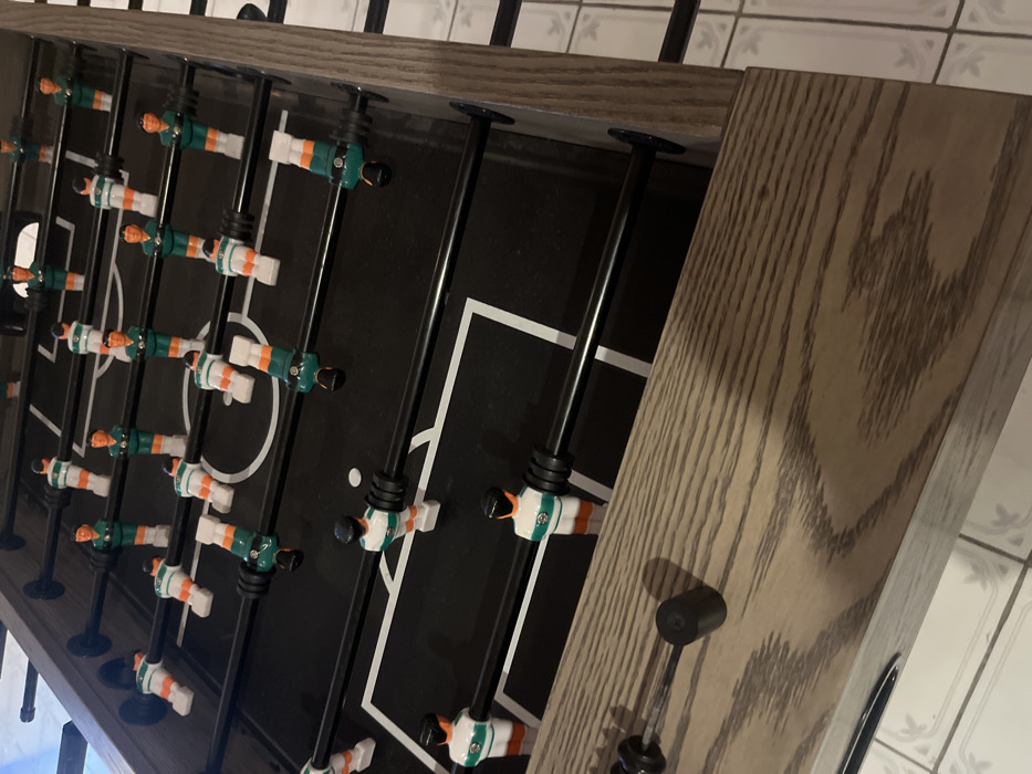 - "A foosball table is visible from an oblique top-down perspective" by FM-2bnDB3, licensed under CC BY 4.0