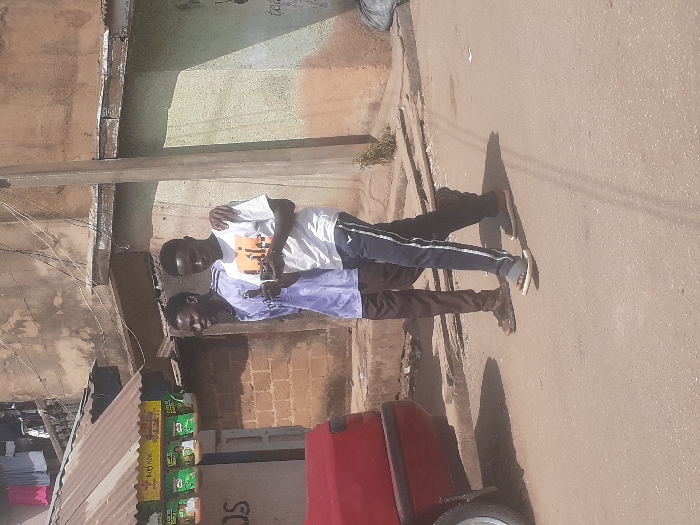 The image captures an outdoor street scene in Jos, Nigeria, under bright daylight
