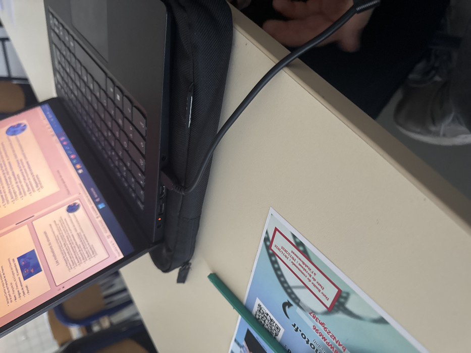 - "The image depicts a close-up, angled view of a black laptop positioned on a black padded sleeve, resting on a light-colored desk surface within a room in Strasbourg, France" by FM-pFdZm2, licensed under CC BY 4.0