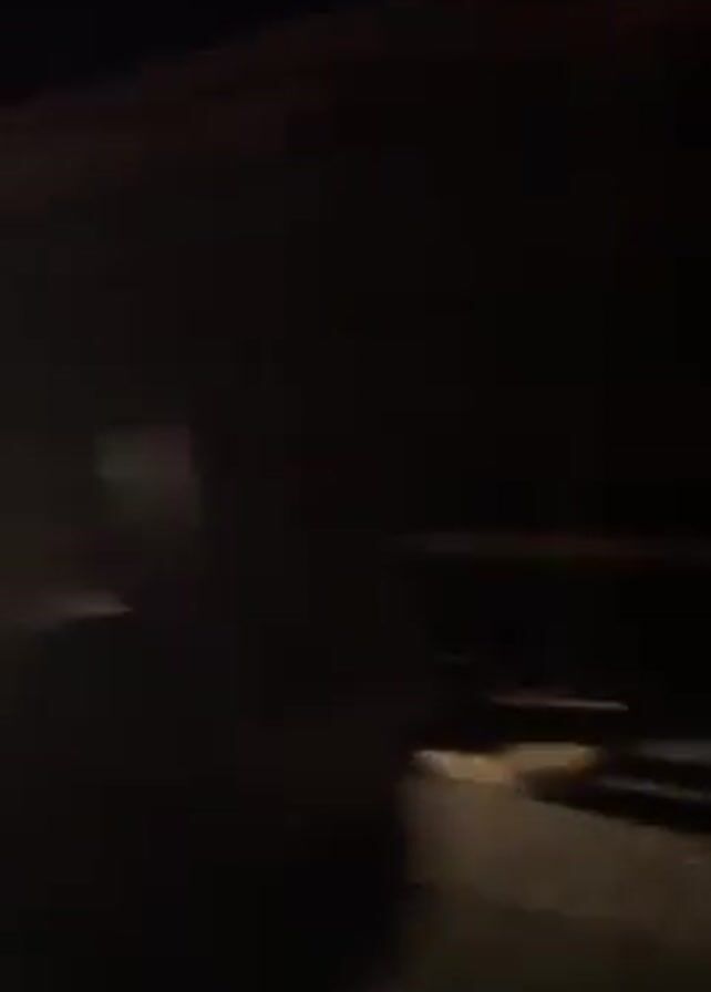 The video, filmed at night, captures a variety of vehicles moving along a road