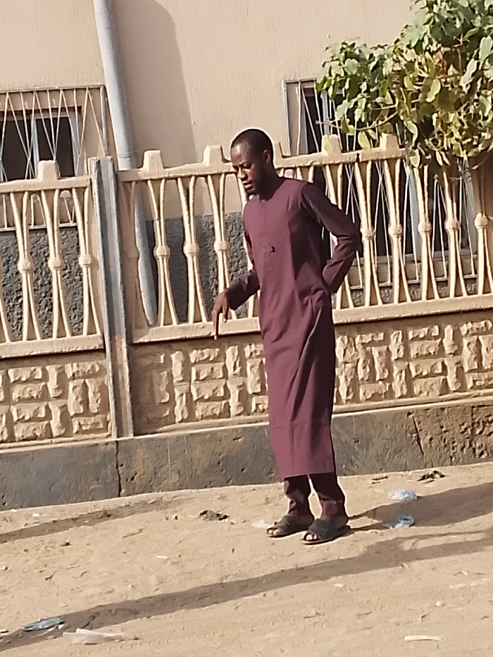 An adult male individual of dark complexion stands outdoors in Tarauni, Nigeria