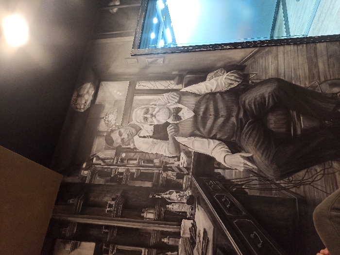 - "The image displays a large-scale, monochrome mural adorning a wall within a commercial establishment, likely a barber shop, located in Irkutsk, Russia" by FM-ef61v1, licensed under CC BY 4.0