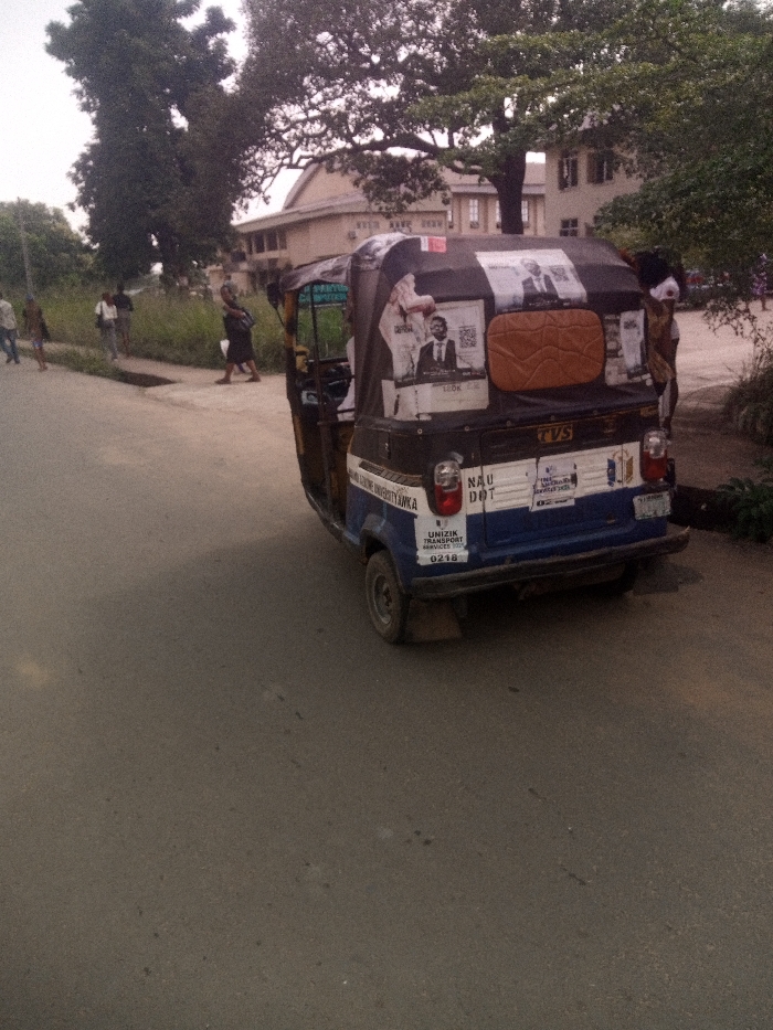 - "The scene is set on an asphalt road in Awka, Nigeria, specifically near the Nnamdi Azikiwe University (UNIZIK) campus, indicated by the "UNIZIK TRANSPORT AWKA" text on the vehicle and the visible "MAIN BANK BLDG" (Union Bank of Nigeria) in the background" by FM-vOlSb2, licensed under CC BY 4.0