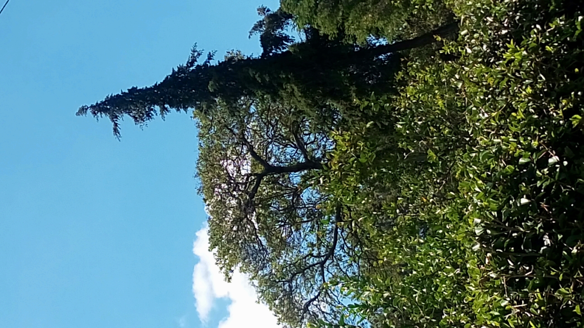 trees against a blue sky with white clouds