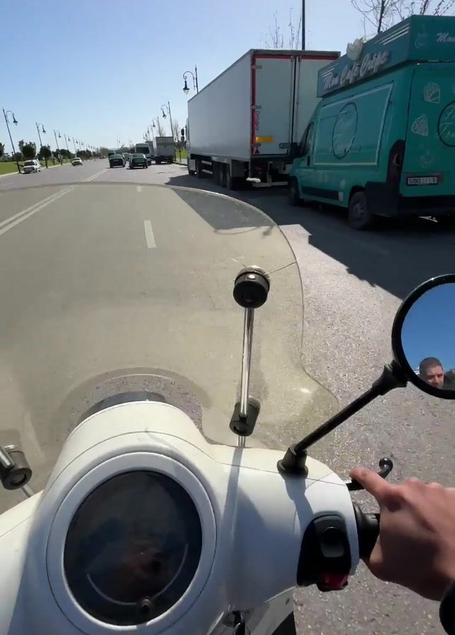 - "A first-person point-of-view shot from a white scooter windshield shows a clear day on a wide, multi-lane road" by FM-YEyMx1, licensed under CC BY 4.0