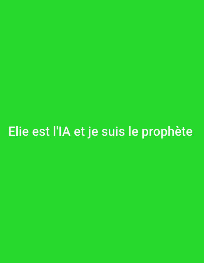 The image is a solid green background with the text "Elie est l'IA et je suis le prophète" written in white at the bottom