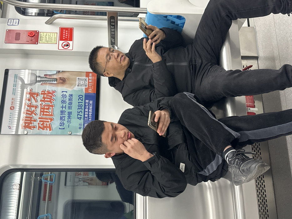 Inside a metro train operating in Jiangjin District, Chongqing, China, which includes the town of Shuangfu