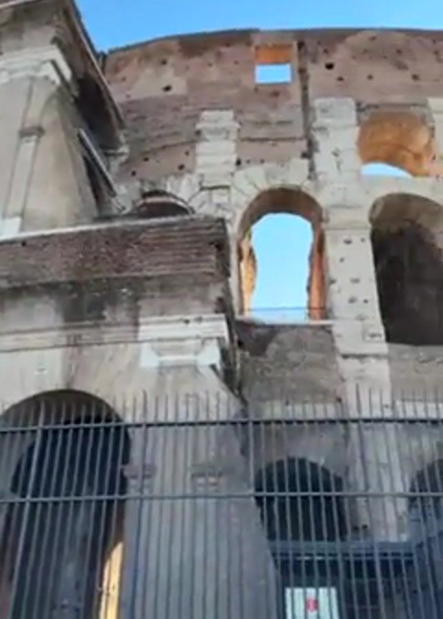 The video pans across the Colosseum in Rome