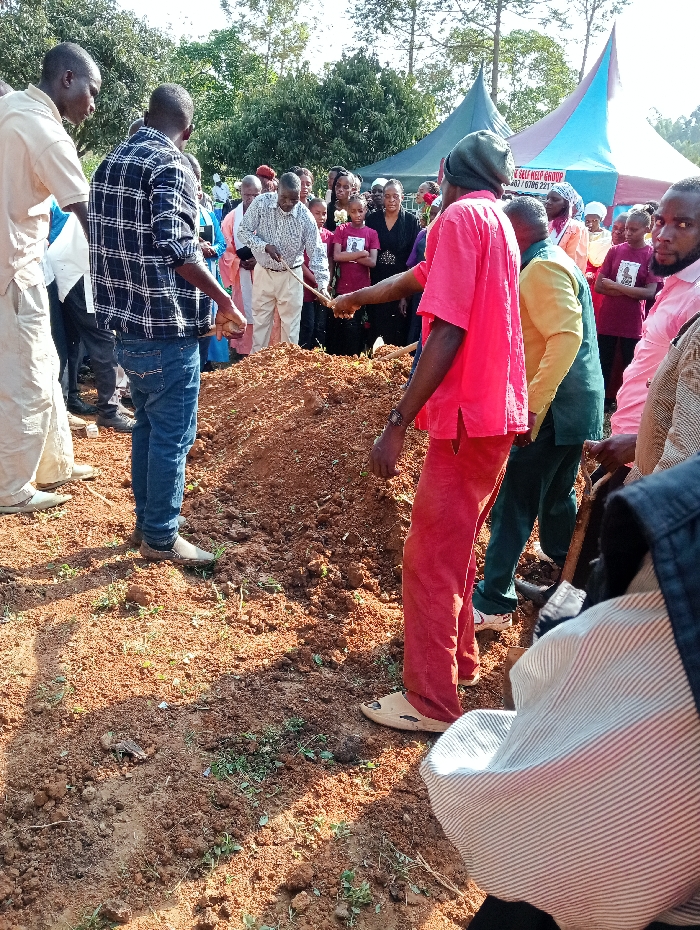 This image depicts an outdoor gathering, likely a funeral, in West Kabras ward, Kenya
