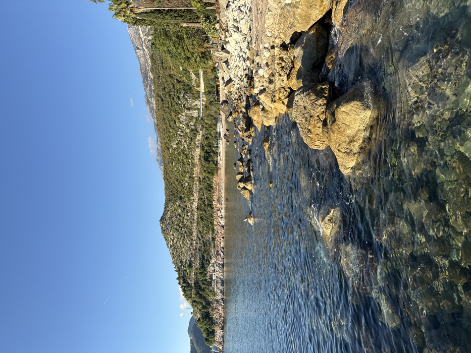 - "The image depicts a coastal scene in Kamenovo, Montenegro, under a clear blue sky with two faint contrails" by FM-gH6Fy1, licensed under CC BY 4.0