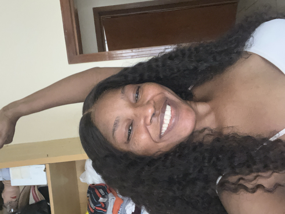 - "An indoor scene in Alaguntan, Nigeria, features a dark-skinned female subject with long, dark, curly hair, centered in the frame" by FM-WDaBx2, licensed under CC BY 4.0